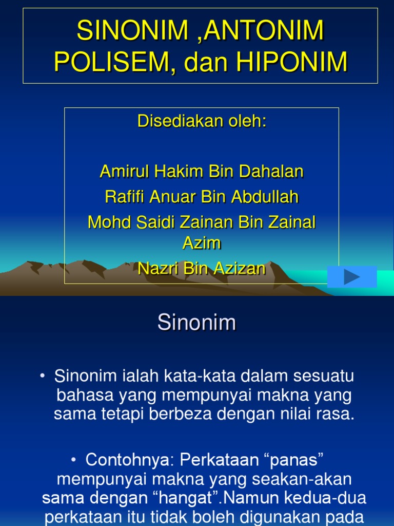 Jika lafalnya sama disebut dengan homograf. Makna harafiahnya, nama lain untuk. Kamus tesaurus bahasa indonesia (tbi) karya eko endarmoko adalah salah satu rujukan wajib bagi 1. Bahasa memiliki banyak bidang kajian, salah satunya ialah kajian makna atau disebut juga semantik. Sinonim adalah dua kata atau lebih yang memiliki makna sama atau hampir sama pada umumnya sebuah kata dapat ditentukan dari konteks kalimatnya.